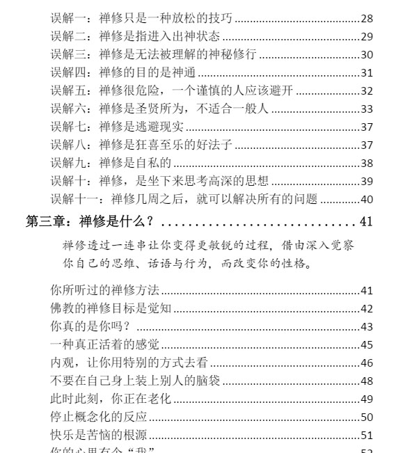 坊间已经有许多详细探讨佛教哲学与禅修理论的书籍,如果你有兴趣的话,我鼓励你们去读,其中有许多写得都很棒。这本书则是告诉你“怎么做”。它是为了那些真的想要修禅的人而写的,尤其是为那些现在正要起步的人。在美国只有少数合格的佛教禅师,在此我们想要提供你动身邀游之前所需具备的基本信息。只有那些遵从本书指示的人才能说我们是成功或失败,也只有那些规律与精进的禅修者才有资格评断我们的努力。没有一本书能涵盖禅修者可能会遇到的所有问题,最后你还是需要一位合格的老师。