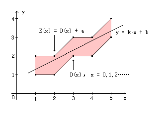 第六章:离散序列的直线拟合算法 许剑伟 2008-12-2 于莆田十中 问题提出:已知古代朔日表,如何找到一条直线 y(x) = k·x + b 拟合朔日表,然后用[y(x)]表示朔日,x表示朔日序数(x=0,1,2……),k和b是待求系数。 数学模型:设某一组实测的离散数据序列D(x),其中x = 0,1,2……。现求解一条直线 y(x) = k·x + b,使y(x)在 x = 0,1,2……的值与实测值的误差大等于0小于a。对于上述问题,a取值为1,遗憾的是这个问题不能使用最小二乘法直接求解,我们考虑其它方法。 数学模型的图解描述: 图中D(x)是已知的离散序列,E(x)= D(x)+ a,拟合直线为y = k·x + b,找出适当的k和b使得直线y(x)完全穿过红色区域。 解题思路: (1)y(x)是未知的,先取个k和b的估值,如图中示意,可取k=1,b=0做为初始估值。 (2)找b的值:平移直线(改变b值),直到直线全部大等于D(x),设b值为b1时刚好超过所有的点,其中临界超过的点是D(x1)。继续平移,找到直线刚好全部小于E(x)时b的取值,记为b2。 如果b2>b1,显然有解,若k值保持不变,b取值(b1+b2)/ 2,那么b允许的误差为h = (b2-b1)/2,查找过程结束。如果b2<=b1则继续以下步聚。 (3)找k的值:以点D(x1)为固定点旋转直线,找出直线不超过E(x)时k的取值范围(k1,k2)。如果k2<=k1则无解,查找过程结束。否则,k取(k1+k2)/ 2。 (4)从第2步开始重复以上过程,直到成功为止。重复的过程中,k的取值是在原有基础上进一步缩小范围的。比如,第一次得到k的范围是1到2之间,第二次为1.5到3之间,那么k的取值不是取前者也不是取后者,而是取二者的交集(1.5,2),否则以上过程中k的取值无法收敛到有效范围之内,造成死循环而找不到解。其实,以D(x)中的任意一点为固定点,都可以得到k的上下界值k1和k2,对于一条能够通过红区的直线,必然能够满足所有k1和k2的约束。 以上得取了b允许的误差值h,如果b不变,k允许的误差为b/N,式中N为D(x)序列的总个数。 算法实现: 设f(x) = D(x) - y(x),设K(n,m)表示点E(n)到点D(m)连线的斜率。 那么f(x)表示y(x)距D(x)的纵向距离,f(x)+a表示y(x)距E(x)纵向距离。 (1)先取个k和b的初始估值。置k可能的取值范围为(k1,k2),这个范围要足够大。 (2)在x=0,1,2……上遍历f(x),求得f(x)的最大值f1和最小值f2及相应的x值x1、x2。那么f2+a就是f(x)+ a的最小值,也就是说f2+a是y(x)到E(x)的最小纵向距离。 (3)如果f1<f2+a则有解,b = b + (f2+a+f1)/2,h = (f2+a-f1)/2,并输出结果,程序结束。 (4)在x>x1上遍历K(x,x1),取得最小值k1(该最小必须须比原来的k1还要小,否则不算) 在x<x1上遍历K(x,x1),取得最大值k2(该最大必值须比原来的k2还要大,否则不算) 如果k1>=k2则无解,输出无解报告,程序结束。否则取k = (k1+k2)/2。 (5)从第2步开始重复计算,直到有解。注意, k1和k2是全过程中的最值,而不是某一次遍历过程中的最值。通常1到6次就能得到结果,如果重复计算10次仍无解,程序也应结束。 优化算法: 有时我们不走运,程序可以得到满足条件的直线,但h的值非常小。比如得到h = 0.000002,设N = 10000,那么k允许的误差为0.0000000002,也就是说k必须取10位有效小数才可保证结果的正确性。所以有必要提高h的值。以下描述本笔者提高h值的方法。 计算前,适当减小a,使得上图的红色区域变小,然后出k、b、h,如果k、b有解,那么相应的y(x)定能通过原来较大的红色区域,这样b的取值范围就变得宽裕了,h自然就比较大了。设a的原值记为A,那么只需将上述算法第3步改为:“如果f1<f2+a则有解,b = b + (f2+A+f1)/2,h = (f2+A-f1)/ 2,并输出结果,程序结束”,等价于“如果f1<f2+a则有解,h = (f2+A-f1)/2,b = b+f1+h,并输出结果,程序结束” 当然,a的值也不能减小过多。因为某些序列对拟合直线要求非常苛刻,理论上可找到的h值本身就非常小,这是a减小过多可能造成无解。寿星万年历的辅助程序中,减小量取值0.0002。 范例程序: 拟合之前先设定参数,以便生成序列。 |